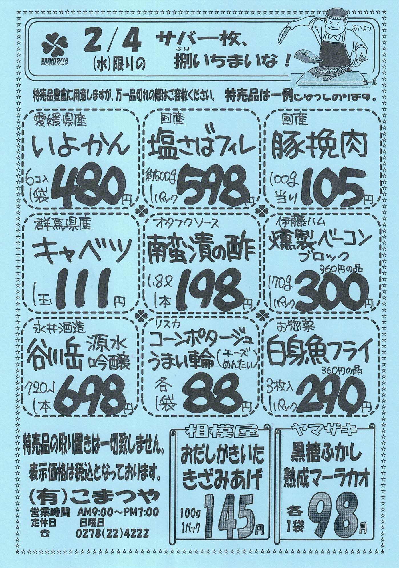 2月4日(水)限りの サバ一枚、捌いちまいな! セール!